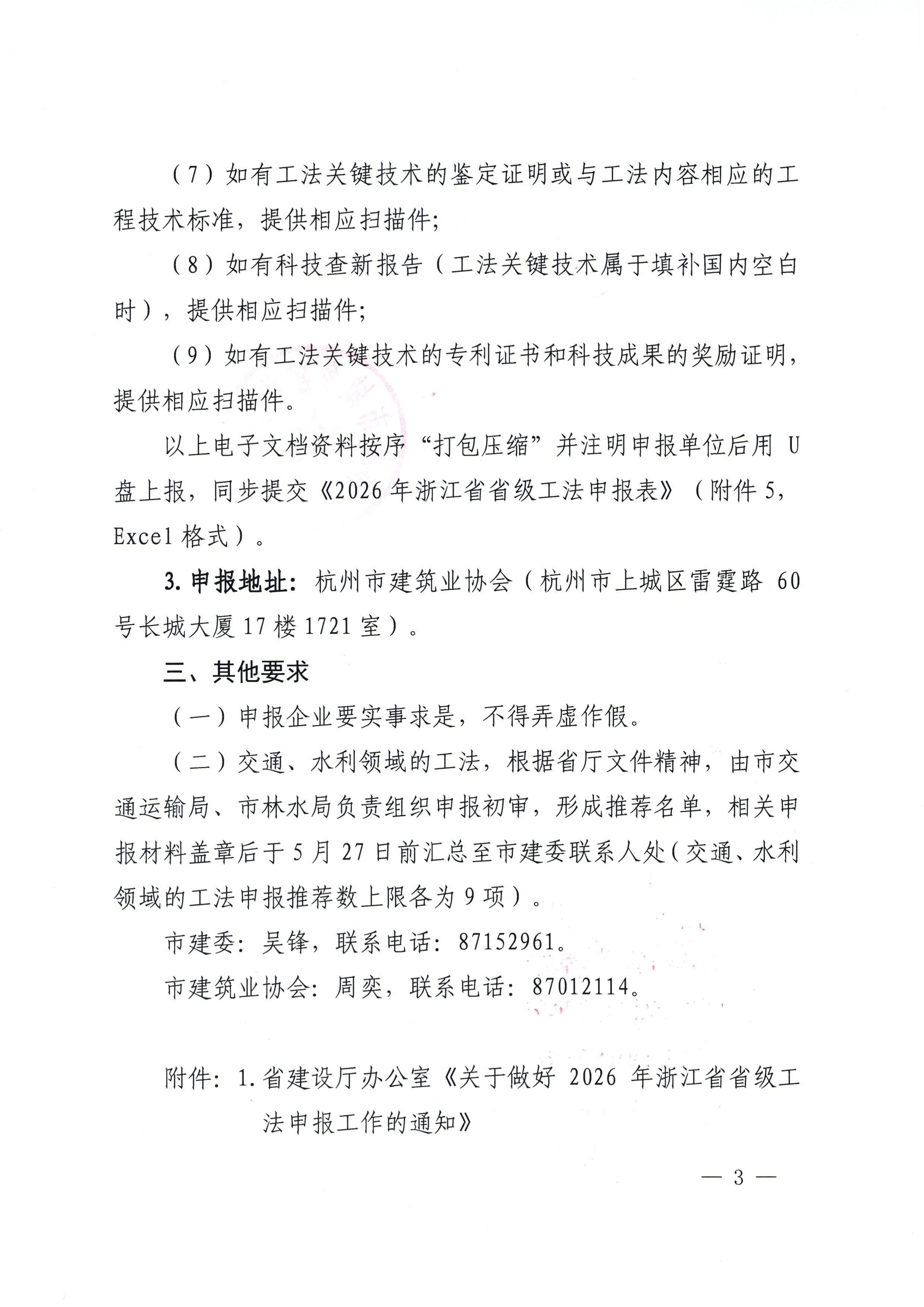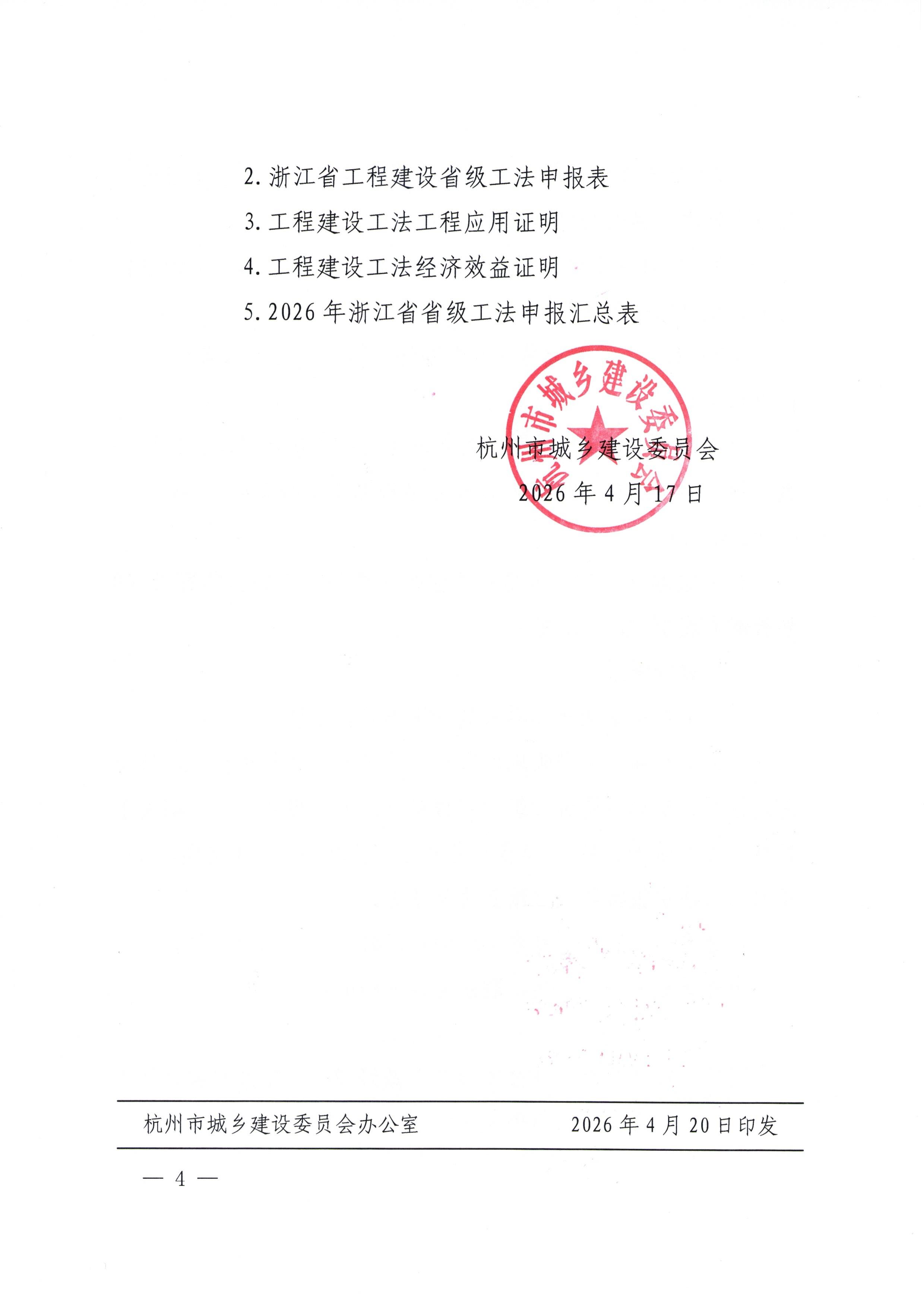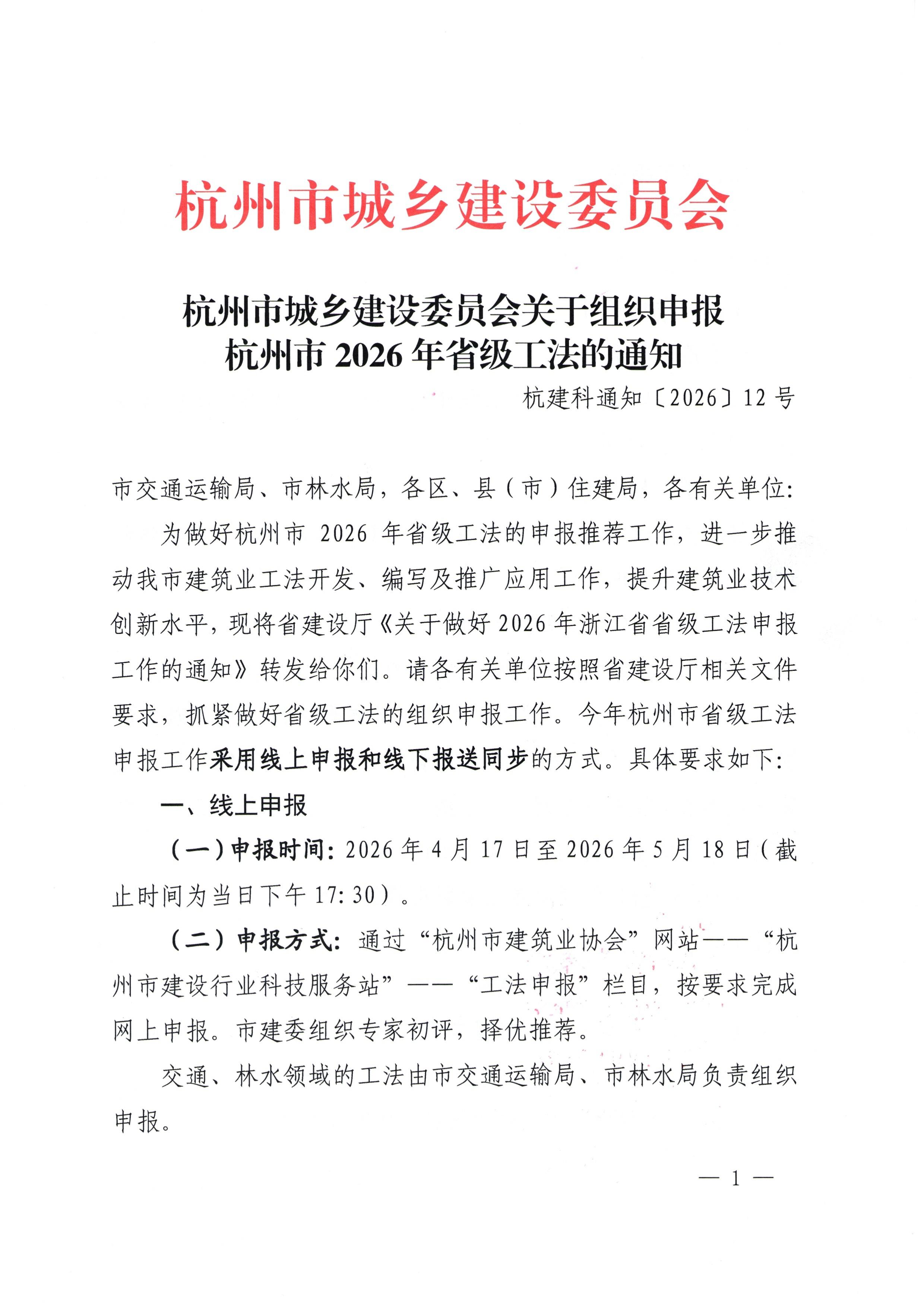 杭州市城乡建设委员会关于组织申报2026年省级工法的通知